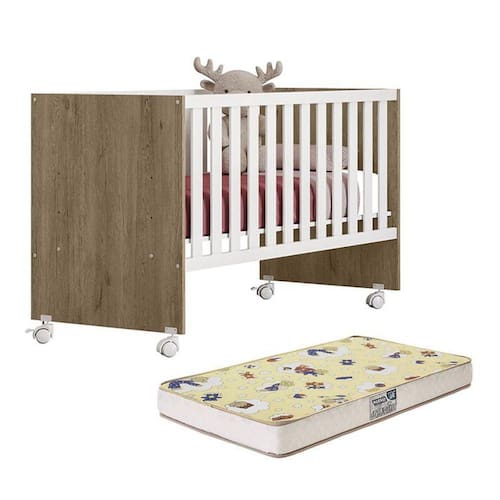 Berço Doce Sonho Reto com Rodízios e Colchão Supreme - Qmovi