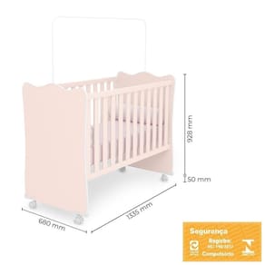 Berço Doce Sonho Rosa Acetinado Com Rodízios - Qmovi Rosa Acetinado Berço Doce Sonho com Rodízios - Qmovi O Berço Doce Sonho foi projetado especialmente para oferecer conforto e ao bebê. Com um design clássico e delicado, ele garante beleza e aconchego para o ambiente. O berço possui certificado do INMETRO, o que proporciona noites mais tranquilas e seguras. Uma escolha de amor e cuidado com o seu bebê. ESPECIFICAÇÕES: - Estrutura em MDP - Pintura UV atóxica - Padrão - Grades fixas - Estrado e travessas em MDF - Acabamento das bordas com perfil PVC - Estrado regulado em 3 alturas: 1- 35cm, 2- 48cm, 3- 61cm - Acompanha suporte para mosquiteiro - Certificado compulsório do INMETRO 007190/2017 - 4 Rodízios, sendo 2 com trava - Colchão recomendado 60x130cm - Não acompanha colchão
