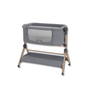 Berço lado a lado: Adequado desde o nascimento até 6 meses ou até 9kg, com altura ajustável, posicionamento anti-refluxo, painéis de malha para fluxo de ar, abertura na lateral e uma correia para fixar o berço à cama dos pais para um descanso noturno tranquilo.