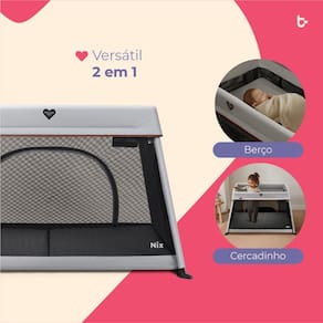 Com design compacto e estrutura leve, o Nix acompanha uma bolsa exclusiva que facilita o transporte e o armazenamento. Seu formato retangular, com laterais em tecido telado, garante excelente ventilacao e ampla visibilidade, permitindo que voce acompanhe o bebe com mais seguranca e conforto.