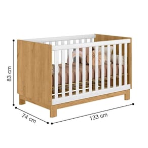 O berço é feito em MDP 15mm, ele pode ser montado como mini cama, para acompanhar o crescimento da criança. Não acompanha colchão (comporta colchão de 10x130x70).