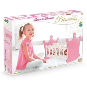 Berço em madeira de MDF, com travesseirinho e colchão de tecido e espuma Produto com balanço, acabamento ergonômico e pintura atóxica Decoração dourada impressa em serigrafia Berço com balanço para embalar o sono de sua princesinha