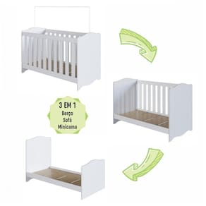 O(a) Berço Encanto 3 em 1 Branco - Completa Móveis é produzido em MDP na escala de brilho Fosco, e possui um grau de dificuldade de montagem: Médio.
