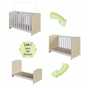 O(a) Berço Encanto 3 em 1 Carvalho Araguaia/Branco - Completa Móveis é produzido em MDP na escala de brilho Fosco, e possui um grau de dificuldade de montagem: Médio.