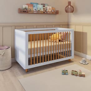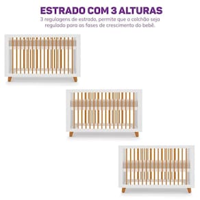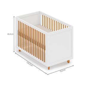 Berço Evolutivo 2 em 1 com Pés em Madeira Maciça Baby Tubbi Casatema Branco / Caramelo. O Berço Tubbi é a escolha perfeita para quem busca conforto, qualidade e segurança. Fabricado em MDF de alta resistência, ele possui laterais com palitos em madeira maciça, proporcionando um design sofisticado e durável. Sua estrutura evolutiva permite três regulagens de altura do estrado, acompanhando o crescimento do bebê e garantindo praticidade no dia a dia. Quando o bebê cresce, ele ainda pode ser utilizado como mini cama, retirando a grade lateral. Além disso, o Berço Tubbi conta com certificação do INMETRO, assegurando que atende a todas as normas de segurança para um sono tranquilo e protegido. Um berço moderno e versátil, ideal para compor um ambiente aconchegante e funcional! Tamanho Colchão : 1,30m x 70cm x 10cm ou 1,30m x 70cm x 12cm.