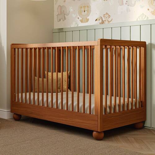 Oferece ainda 4 níveis de altura para o estrado, garantindo que você encontre a posição ideal. Seus pés esféricos, esculpidos na madeira, conferem um toque de originalidade e personalidade à peça, tornando-a uma verdadeira jóia para o quarto do bebê.