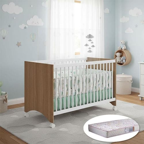 Berço Gutti Ambiente Amadeirado Acetinado com Colchão Gazin Móveis Estrela