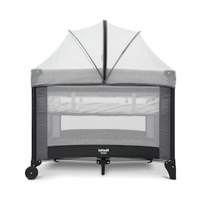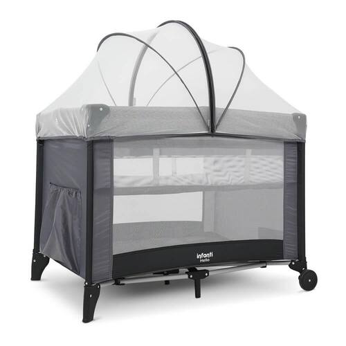 Portátil e desmontável com bolsa de transporte, 2 alturas, bolso lateral e mosquiteiro elevado, com abertura central pelo zíper, fácil acesso sempre que precisar.