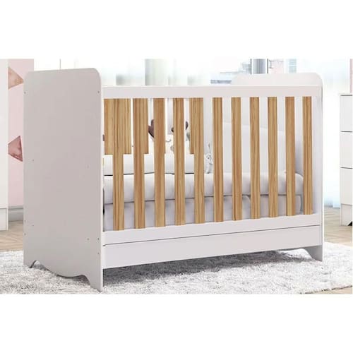 Berço Infantil Ben 3 em 1 Branco/Amendoa - Peroba