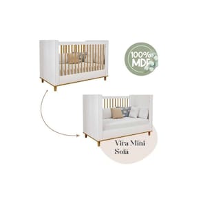 Berço Infantil Cupcake 2 em 1 Off White/Nature - Permóbili Baby