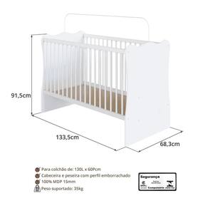 Berço Infantil em Mdp 91,5x133,5cm Plasbaby Branco. Com design moderno e clean, o Berço Infantil Plasbaby é a escolha perfeita para o quarto dos sonhos do seu bebê! Produzido em MDF/MDP de alta qualidade e com os cantos arredondados ele garante maior segurança e conforto que o seu pequeno precisa para noites tranquilas de sono. Possui armação para mosquiteiro para uma noite se sono tranquila, podendo ser facilmente removido conforme a necessidade. As Grades são fixas, atendendo as rigorosas normas do INMETRO, (Registro 005334/2025) proporcionando a seu filho toda a segurança que ele necessita. Marca: Não Informado