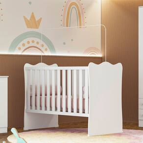Berço Infantil Encanto Feliz com Mosquiteiro e Rodízios -Branco Branco - ÉdeCasaMóveis