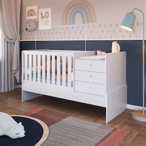 O Berço Cama Multifuncional Branco da Completa Móveis é a escolha perfeita para pais que buscam praticidade e estilo para o quarto do bebê. Com características que o destacam, este móvel versátil e elegante oferece muito mais do que um simples berço. Quando montado em berço ele conta com uma cômoda com trocador, proporcionando facilidade e organização durante os cuidados com o seu bebê. Além disso, pode ser transformado em uma cama de solteiro, acompanhando o crescimento do seu bebê e garantindo uma transição suave para a próxima fase. Garanta um ambiente acolhedor e funcional para os momentos especiais em família.
