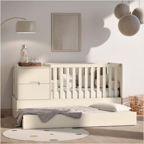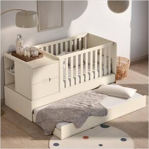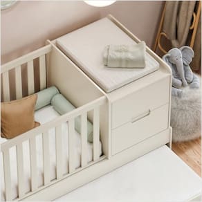 Multifuncional: transforma-se em mini cama, cama auxiliar, escrivaninha, mini cômoda e nicho;