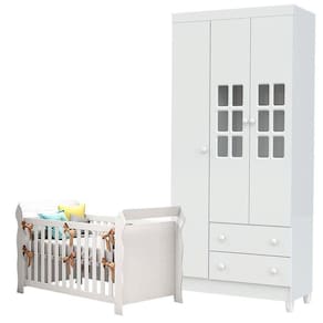 Berço Lara e Guarda Roupa Infantil 3 Portas Mariah Branco Brilho - Carolina