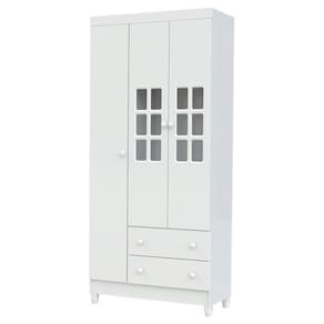 Guarda Roupa Infantil 3 Portas Mariah Branco Brilho - Carolina