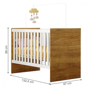 Berço Life Em Mdf Com Mosquiteiro Tigus Baby Branco/madeirado Ypê