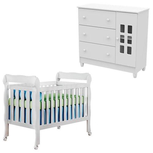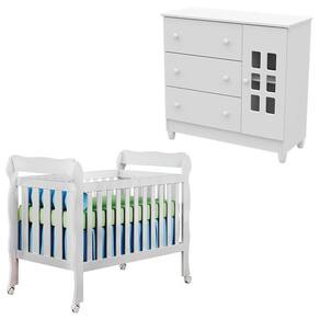 Berço Lila e Cômoda Infantil Mariah Branco Brilho - Carolina