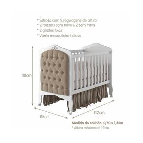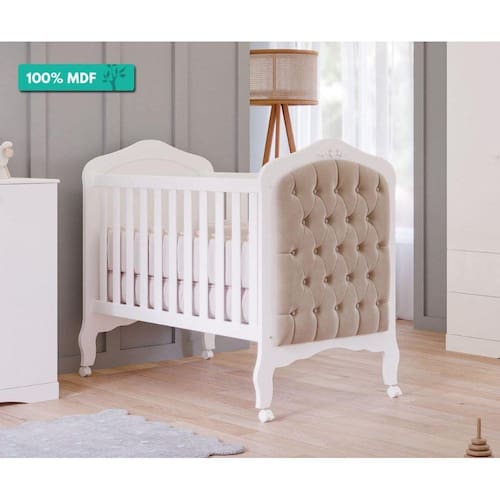 Berço Mini Cama 100% MDF Com Capitone Harmonia Permobili Branco/Bege