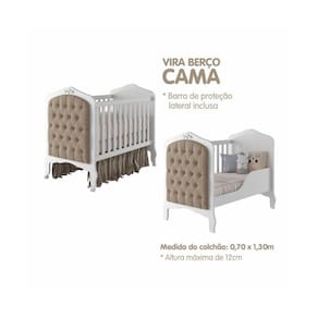 Este HARMONIA é um produto que vai levar mais elegância e sofisticação para o quarto do seu bebê. Produzido com MDF, madeira resistente que garante estabilidade e segurança, ele é a melhor opção para deixar que seu anjinho descanse. O melhor de tudo é que ele acompanha o crescimento do seu filhote porque também vira um Berço Cama. O detalhe do Capitonê é uma maravilha a parte, você e quem mais dividir o ambiente do seu Bebê ficarão deslumbrados.