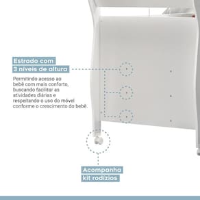 Berço Mini Cama 100% MDF com Colchão Slim Branco. O seu bebê merece ter um lugar especial para ele aproveitar as noites iniciais de sono, não é mesmo? E, por isso, é importante apostar em móveis certeiros como o Berço 100% MDF! O visual clássico confere elegância e aconchego para o quarto do recém-nascido, dando mais liberdade na hora de decorar o espaço para recebê-lo. Ah, a peça ainda conta com regulagens de altura para se adaptar melhor às necessidades do dia a dia. Gostou?