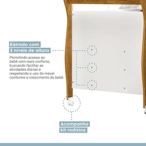 Berço Mini Cama 100% MDF Slim Branco/Madeirado Ypê. O seu bebê merece ter um lugar especial para ele aproveitar as noites iniciais de sono, não é mesmo? E, por isso, é importante apostar em móveis certeiros como o Berço 100% MDF! O visual clássico confere elegância e aconchego para o quarto do recém-nascido, dando mais liberdade na hora de decorar o espaço para recebê-lo. Ah, a peça ainda conta com regulagens de altura para se adaptar melhor às necessidades do dia a dia. Gostou? Ean: 7908506282667