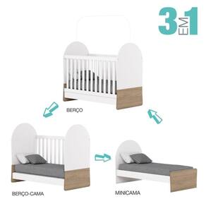 Berço Mini Cama 3 em 1 Mdf/mdp Magia Branco/Marrom. O Berço Mini Cama Magia é um produto 3 em 1, Berço que se transforma em Berço-cama e em Mini cama acompanhando o crescimento do seu bebê. O Berço conta com acabamentos arredondados, grade fixa, possui 02 regulagens de altura e suporte para mosquiteiro pensados para transmitir beleza e segurança para o quarto do seu filho.