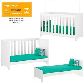 Berço Infantil Multifuncional aprovado e certificado conforme regulamento do INMETRO (Registro N 002814/2021). Projetado para acompanhar as diferentes fases de crescimento do bebê, adaptando-se às suas necessidades ao longo do tempo. Sua estrutura é composta por MDP 9mm, 15mm e 18mm, garantindo durabilidade e resistência. Possui altura regulável do estrado em duas opções: 1: 18 cm - 2: 46,8cm do chão, e traz facilidade de montagem que garante que o móvel atenda às necessidades da família ao longo dos anos, lastros em MDF, grades fixas, bordas arredondadas para maior segurança do bebê, acompanha suporte para mosquiteiro, suporta até 35 Kg. Investir em um berço multifuncional é uma escolha econômica e sustentável, pois elimina a necessidade de adquirir novos móveis a cada etapa do desenvolvimento da criança, além de otimizar o espaço no ambiente. Indicado colchão 130x60 cm. Este móvel chegará em sua casa separado em 01 volume.