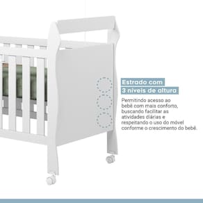 Berço Mini Cama 3 em 1 Soninho 100% MDF Branco. O berço 3 em 1 Soninho possui um design robusto e imponente, produzido em 100% MDF de origem sustentável ele é o berço ideal para o seu baby. Possui 3 funcionalidades (berço, sofazinho e mini cama), além de possuir 3 regulagens do nível de altura do estrado. Acompanha kit de rodízios. Berço tamanho americano. Colchão vendido separadamente. Ean: 7908308781665