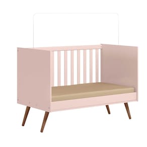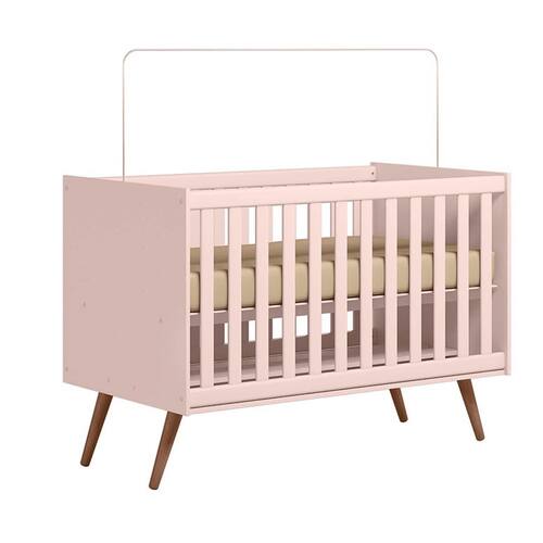 Berço Mini Cama 70cm Com Rodízios e Mosqueteiro -Rosa Acetinado - ÉdeCasaMóveis