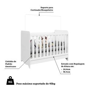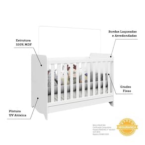 Berço Mini Cama Americano 100% MDF 3 em 1 Ben Móveis Peroba Branco Brilho. O conceito de berço 3 em 1 promove melhor aproveitamento do móvel, possibilitando que seu bebê utilize-o até por volta dos 5 anos, dependendo das condições de uso. Esses produtos tem sua montagem flex, ou seja, na sua maioria, podem ser montados como berço, mini cama e mini sofá, que é o caso do Berço 3 em 1 Ben. Além desse benefício, o Berço Ben possui outras caracteristicas que te garantem a melhor escolha na montagem do quartinho infantil. Ele possui excelência com sua estrutura em 100% MDF, acabamento em verniz e pintura atoxica, sem mencionar seu design com bordas arredondadas, tudo para oferecer maior segurança, durabilidade e conforto. Também possui certificado do INMETRO e um suporte para mosquiteiro.