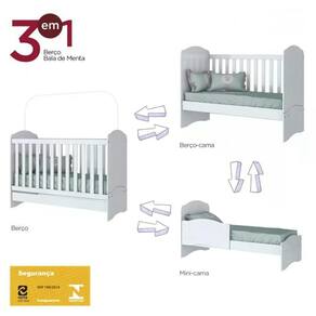 ESPECIFICAÇÕES: Estrutura MDF e MDP Pintura UV atóxica Padrão brasileiro Grade fixa Berço 3 em 1 Regulagem de altura de 29 e 56,4 cm Acompanha suporte para mosquiteiro Certificado do INMETRO 009196/2014 Colchão recomendado 60x130 cm Não acompanha colchão