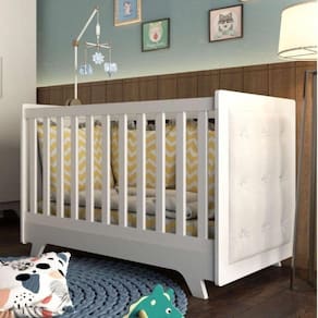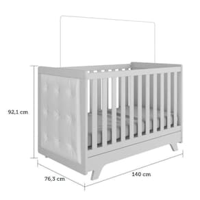 Berço Mini Cama com Capitône Retrô 100% MDF Móveis Peroba Branco/Corino Branco. O Berço Mini Cama Retrô encanta pelas suas linhas retas, inspirado no estilo passado com um toque de modernidade para o quarto do seu bebê. É uma excelente opção pra quem busca conforto, segurança e beleza em um só produto. O colchão a ser utilizado é o padrão Americano, com 70cm de largura por 130cm de comprimento, mais conforto com mais espaço. O varal para mosquiteiro está incluso e a base do colchão é regulável em 3 opções de altura, aumentando o conforto no uso diário e na segurança com o crescimento do seu pequeno(a). Com acabamento em pintura ultravioleta atóxica, qualidade de ser produzido em 100% MDF e laterais com detalhes em corino no estilo capitonê. Obs: Para a montagem do produto na opção Mini Cama, deve ser destacado uma das laterais capitonê conforme manual de montagem. Ean: 7909903058770