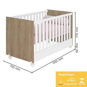 Berço Mini Cama Doce Sonho Carvalho/branco Com Rodízios E Colchão Baby Physical - Qmovi Carvalho/branco Berço Mini Cama Doce Sonho com Rodízios e Colchão Baby Physical - Qmovi O Berço Doce Sonho foi projetado especialmente para oferecer conforto e ao bebê. Com um design clássico e delicado, ele garante beleza e aconchego para o ambiente. Ele acompanha o desenvolvimento do seu filho se transformando em uma linda mini cama. O berço possui certificado do INMETRO, o que proporciona noites mais tranquilas e seguras. E para completar o Colchão Baby Physical da Ortobom vai proporcionar noites mais tranquilas e aconchegantes. Uma escolha de amor e cuidado com o seu bebê. Berço Mini Cama Doce Sonho com Rodízios - Qmovi - Estrutura em MDP - Pintura UV atóxica - Padrão americano - Grades fixas - Estrado e travessas em MDF - Estrado regulado em 3 alturas: 1- 35cm, 2- 48cm, 3- 61cm - Acompanha suporte para mosquiteiro - Se transforma em mini cama - Certificado compulsório do INMETRO 007189/2017 - 4 Rodízios, sendo 2 com trava - Colchão recomendado 70x130cm