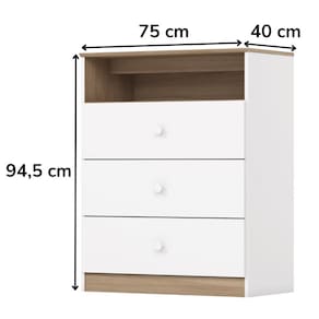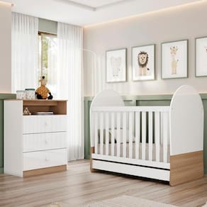 A cômoda conta com gavetas com corrediças telescópicas, nicho superior, puxadores em ABS e tampo chapéu com design soft. NÃO ACOMPANHA COLCHÃO E DEMAIS DECORAÇÕES. Produto entregue em 02 volumes.