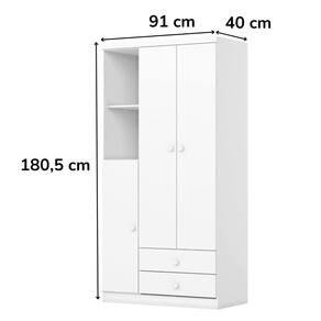 O guarda-roupa conta com portas com dobradiças metálicas, gavetas com corrediças metálicas, puxadores em ABS, prateleira interna, cabideiro em alumínio e prateleiras decorativas laterais. NÃO ACOMPANHA COLCHÃO E DEMAIS DECORAÇÕES. Produto enviado em 02 volumes.