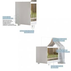 O seu bebê merece ter um lugar especial para aproveitar as primeiras noites de sono, não é mesmo? Por isso, é essencial apostar em móveis adequados, como o Berço Mini cama Flocos. Seu design clássico proporciona elegância e conforto ao quarto do recém-nascido, além de permitir maior liberdade na decoração do espaço. Este berço conta ainda com regulagens de altura, facilitando a adaptação às necessidades diárias. Possui estrutura em MDF e seu acabamento em pintura UV. Acompanha Kit para transformação em mini cama e suporte mosquiteiro. A flexibilidade de montar em duas opções, adaptando-se ao estilo do quarto. Certificado do INMETRO: BER-619/2017.