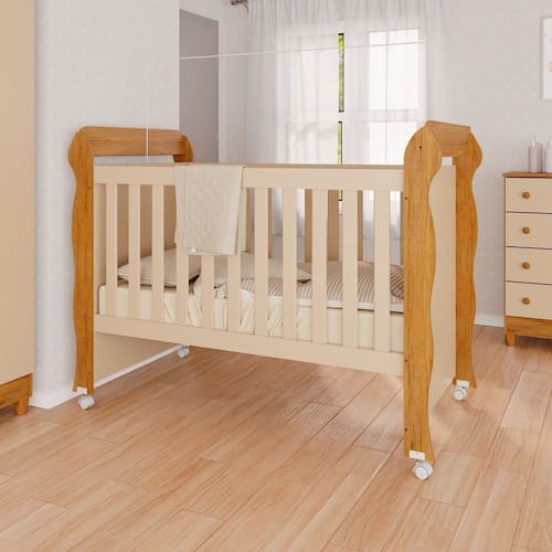 Quer acompanhar o crescimento do seu baby, sem ter que trocar o local do soninho dele a cada fase? O Berço Mini Cama Mirelle Amadeirado-Rústico é perfeito para acompanhar o crescimento dele, e vira uma mini cama, possuindo um design exclusivo e elegante, com um toque de charme que só a Carolina Baby garante, além ser super prático, com estrutura super-resistente, com cabeceiras fabricadas em alta resistência mecânica, superfície e bordas lisas e arredondadas, com distância máxima entre ripas de 6cm, acabamento por camadas de verniz foto curado de composição atóxica, o estrado é feito MDF de 6mm. Montado, ele tem 116,2cm de altura x 143cm de largura x 79,5cm de comprimento, e utiliza colchão de 70cm x 130cm (Não incluso. Dá uma olhadinha nos colchões que temos disponíveis). Montagem não inclusa, também. Garantia de 90 dias por defeito de fabricação.