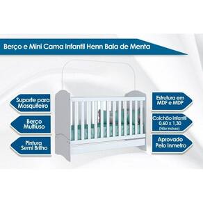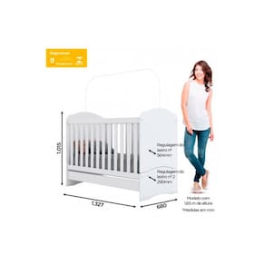 Dimensões(Cm): Comprimento(Profundidade): 133cm x Largura: 68cm x Altura: 102cm Peso Máximo Suportado - 70 kg Tipo de Estrutura do Móvel - MDF/MDP Tipo de Pintura - UV Tipo de Acabamento da Pintura - Semi Brilho - Atóxica Tamanho de colchão para usar no berço - 60x130 Garantia - 3 meses Certificação de Qualidade de Móveis - INMETRO - ABNT NBR 15860