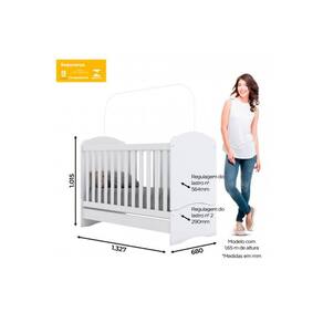 Material de Estrutura - MDF/MDP Estilo do Móvel - Moderno Tipo de Pintura - Ultravioleta Tipo de Acabamento da Pintura - Atóxica Tipo de Acabamento - Acabamento Interno Branco Material do Estrado - Estrado de Madeira Reflorestada Tamanho de colchão para usar no berço - 60x130 Diferenciais dos Móveis Infantis - Suporte p/ Mosquiteiro - Berço Multiuso - Grade de Segurança - Grades Removíveis