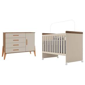 Berço Mini Cama Lívia e Cômoda com Porta Emilly Off White Carvalho - Canaã