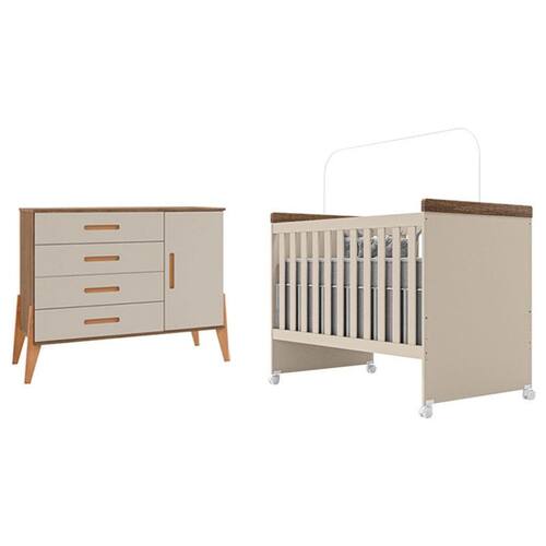 A mamãe começou a procurar os móveis para o quartinho do seu bebê? Então apresentamos para você este belo conjunto composto pelo berço mini cama da linha Lívia com a cômoda da linha Emilly. Com o berço se transformando em uma mini cama prolongando sua vida útil. A cômoda possui quatro gavetas e uma porta, com amplo espaço interno para a mamãe guardar as roupinhas e itens. Fabricados pela Canaã, são desenvolvidos em 100% MDF de qualidade garantindo mais durabilidade e resistência. Esse conjunto é perfeito para qualquer estilo de ambiente, além disso, foi projetado para acompanhar todas as fases de crescimento do seu filho. Confira as características: