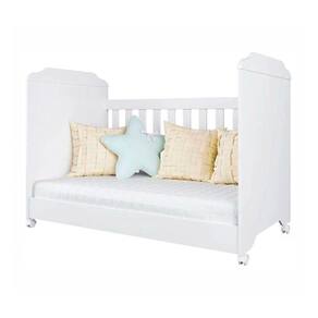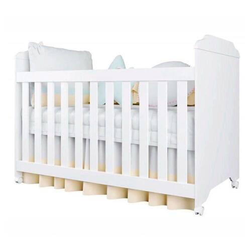 Estruturado em mdf e mdp de alta resistencia, possui estrado em madeira macica, suporte para mosquiteiro, ripas com distancia maxima de 6 cm, grade movel com altura regulavel e travas de seguranca, rodizios que facilitam a locomocao pelo local e ainda acompanha o desenvolvimento do seu/sua filho(a), porque pode ser utilizado como uma cama.