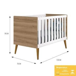 Berço Mini Cama Theo Retrô Branco Fosco/mezzo Com Pés Amadeirado - Reller Móveis Branco Fosco/mezzo Berço Mini Cama Theo Retrô com Pés Amadeirado - Reller Móveis O Berço Theo Retrô é uma inspiração de épocas clássicas, uma releitura do estilo antigo nos tempos atuais, rejuvenescendo o ambiente com cores e formas. Seus pés pontiagudos realçam ainda mais essa proposta. O Berço Theo Retrô além de muito estiloso, transforma-se em mini cama com proteção, auxiliando na transição do berço para caminha, desfrutando do móvel por mais tempo. Deixe o quartinho do seu filho moderno e encantador com o Berço Theo Retrô. ESPECIFICAÇÕES: - Estrutura em MDF - Pintura UV atóxica - Acabamento fosco - Grade Fixa - Espaçamento da grade: 5,9 cm - Estrado em MDF - Cantos arredondados - 3 Regulagens de altura do estrado - Acompanha suporte para mosquiteiro - Transforma-se em mini cama - Padrão Americano - Pés pontiagudos em madeira maciça - Certificado pelo INMETRO 002666/2018 - Colchão Recomendado: 130 x 70 cm - Não acompanha colchão