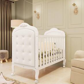 Berço Minicama 3 em 1 com Capitonê 100% Mdf Maya Espresso Móveis Branco Brilho. Berço Maya 3 em 1: Conforto, Praticidade e Estilo! Transforme o quarto do seu pequeno com o Berço Maya, a escolha perfeita para pais que buscam versatilidade e tranquilidade. Fabricado em MDF de reflorestamento e com pintura UV atóxica, o Berço Maya oferece máxima segurança e durabilidade. Possui certificação INMETRO, estrado com 3 regulagens de altura e bordas arredondadas. Este berço multifuncional 3 em 1 se adapta ao crescimento do seu filho, virando minicama ou minisofá. Com 4 rodízios (2 com travas), a mobilidade é garantida. Compatível com colchão padrão americano (70x130cm). O design provençal com capitonê em corino branco adiciona elegância. Invista no bem-estar e segurança do seu bebê! *Não acompanha colchão.*