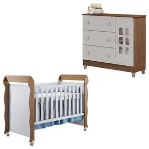 Berço Mirelle e Cômoda Mariah Branco Acetinado Amadeirado - Carolina