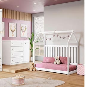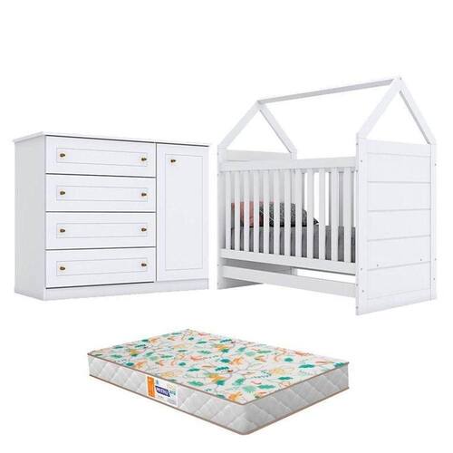 Berço Montessoriano e Cômoda Infantil Americano Branco com Colchão Gazin Henn