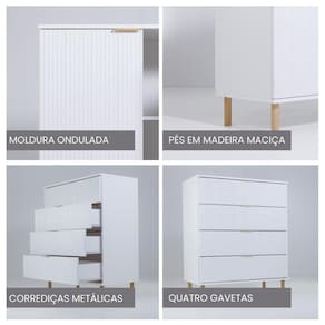 A Cômoda 4 Gavetas Ditália é a opção ideal para elevar o charme e a organização do seu quarto. Apresentando um design elegante, este móvel adiciona um toque de refinamento ao ambiente, ao passo que suas quatro gavetas são meticulosamente desenhadas para armazenar objetos pequenos e médios, assegurando praticidade e arrumação ao seu espaço.