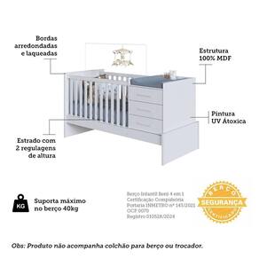 Berço Multifuncional 4 em 1 com 3 Gavetas Yan 100% Mdf Espresso Móveis Branco Brilho. O estilo clássico transforma o quarto do bebê em um espaço que reflete cuidado, aconchego e carinho. Com móveis que priorizam beleza atemporal, funcionalidade e organização. Uma escolha perfeita para um ambiente sofisticado e acolhedor. O Berço Yan é um produto padrão americano, fabricado 100% em MDF e possui pintura atóxica. O estrado possui altura regulável e as gavetas tem corrediças telescópicas. Suas bordas são arredondadas e laqueadas, proporcionando maior segurança e uma sensação agradável ao toque. Acompanha suporte de cortinado e é um produto flex 4 em 1, sendo berço, trocador, gaveteiro e baú integrados, além de também poder ser tranformado em cama solteiro.
