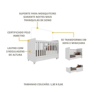 - Produto: Berço Multifuncional Americano Pimpolho 3 em 1 Com Rodízios Multimóveis Branco